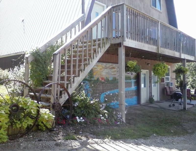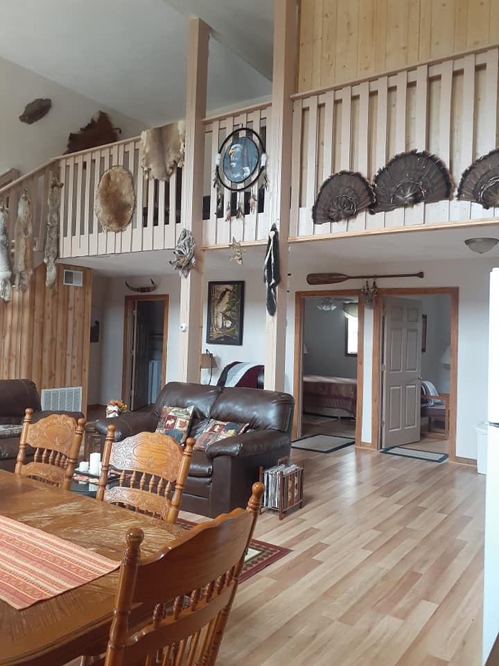 The Driftless Lodge is a spacious three floor furnished guest house you will have all to yourself. It has four bedrooms (sleeps 9), three bathrooms and a large loft area. There is a Smart T.V. & dvd player w/movies on the lower level and T.V. w/dvd player on the 3rd level. The Den is a cozy space that is furnished and sleeps 4. It has a Smart T.V. and dvd player with movies. It is on the ground level below the Driftless Lodge and is a separate rental